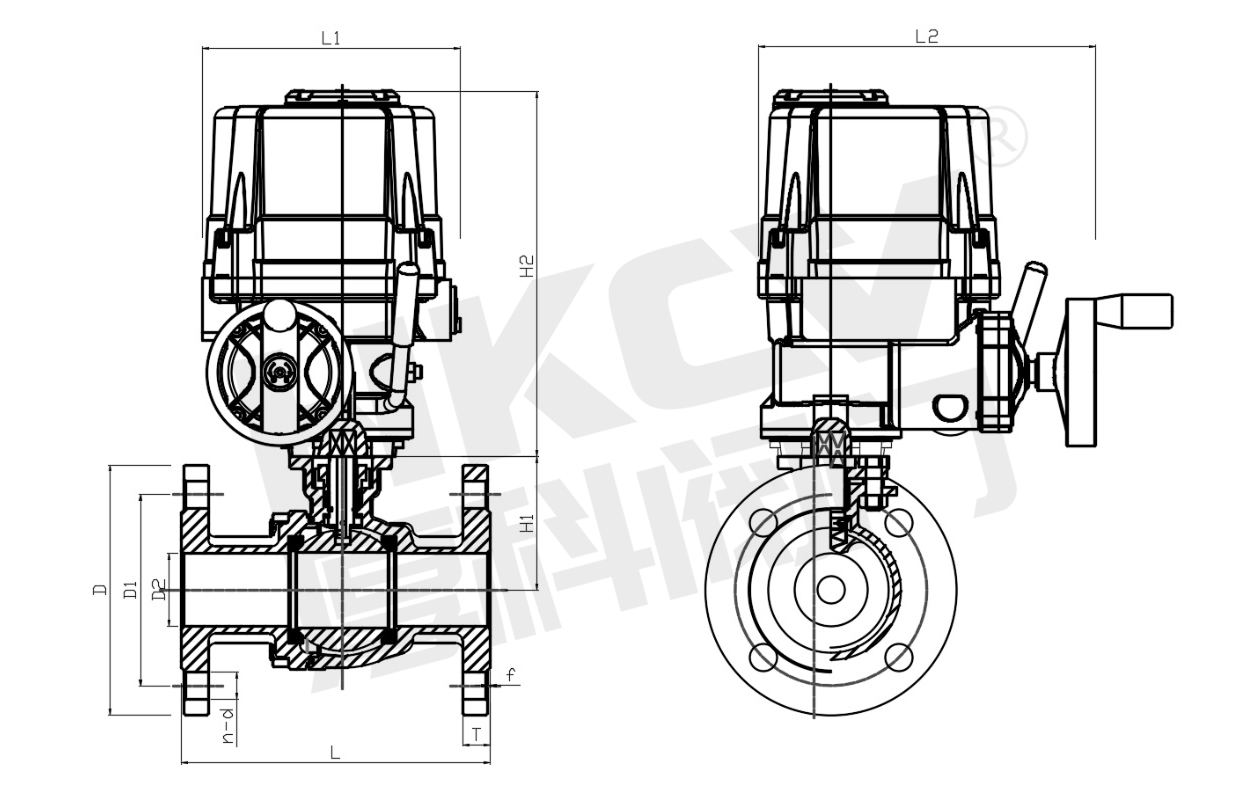 L | L1 | L2 | H1 | H2 | D | D1 | D2 | T | f | n-d | 執(zhí)行器型號 | |