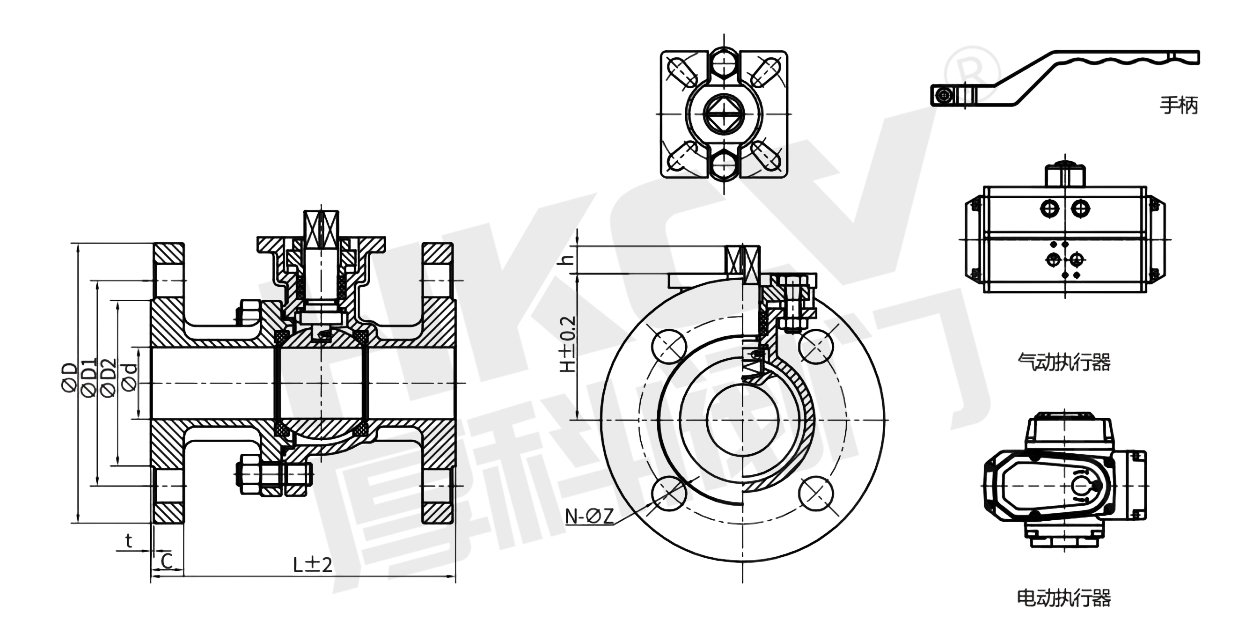 - ISO5211標準高平臺結構設計、直接安裝各類執(zhí)行器